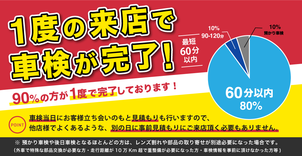 交換部品が無ければ見積もりから車検終了まで約1時間で終了です。