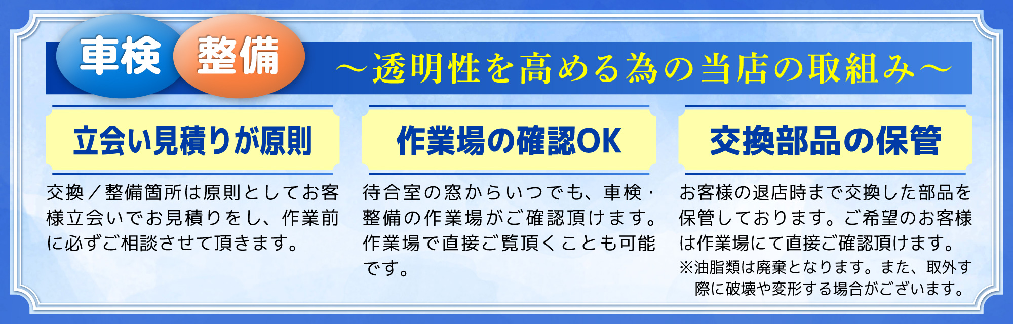 当社が車検時に整備した箇所について、保証期間内に万が一不具合が生じた場合には、無償で修理対応させて頂きます!