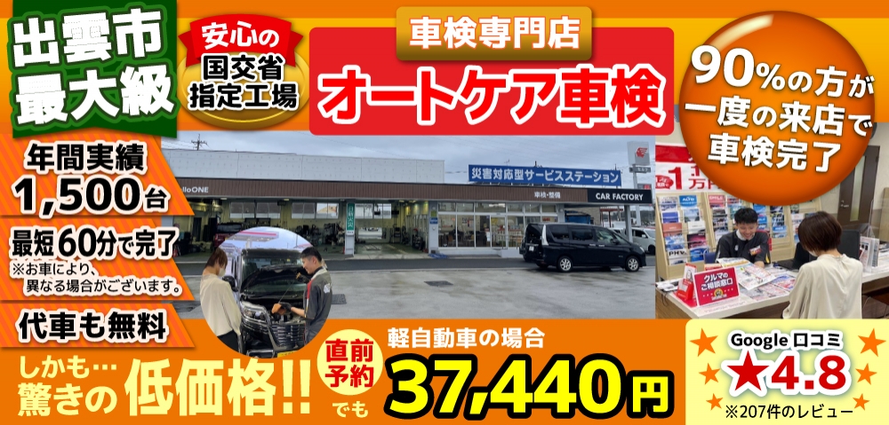 出雲で3.7万の格安車検!年1.5千台 出雲の安い車検